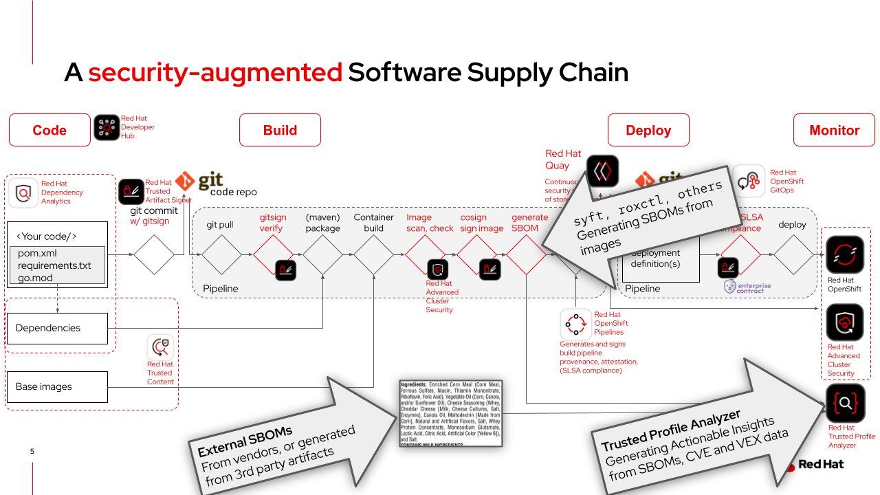 Vulnerability Management RHTPA provides storage and management for SBOMs with cross-referencing capabilities between SBOMs and CVEs/Security Advisories that are continuously ingested from trusted sources like Red Hat. This helps teams: